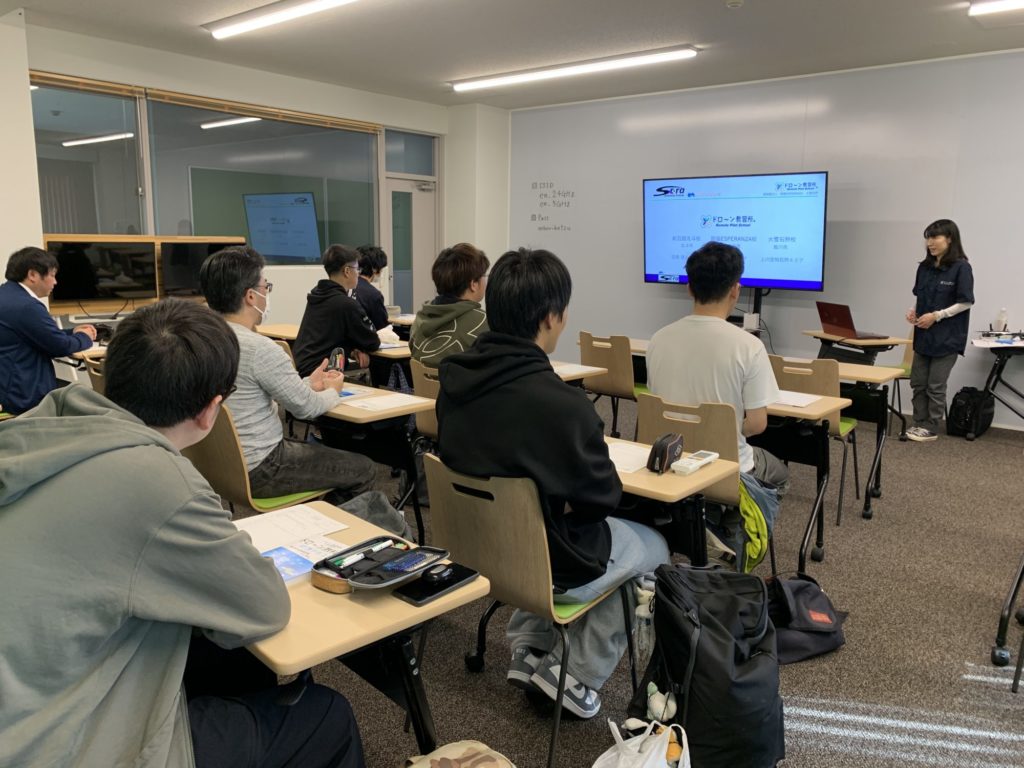 日本工学院北海道専門学校 電気工学科の方へ、無人航空従事者試験3級(通称 ドローン検定3級)の講習と、基礎技能講習のお試し体験会を行いました。